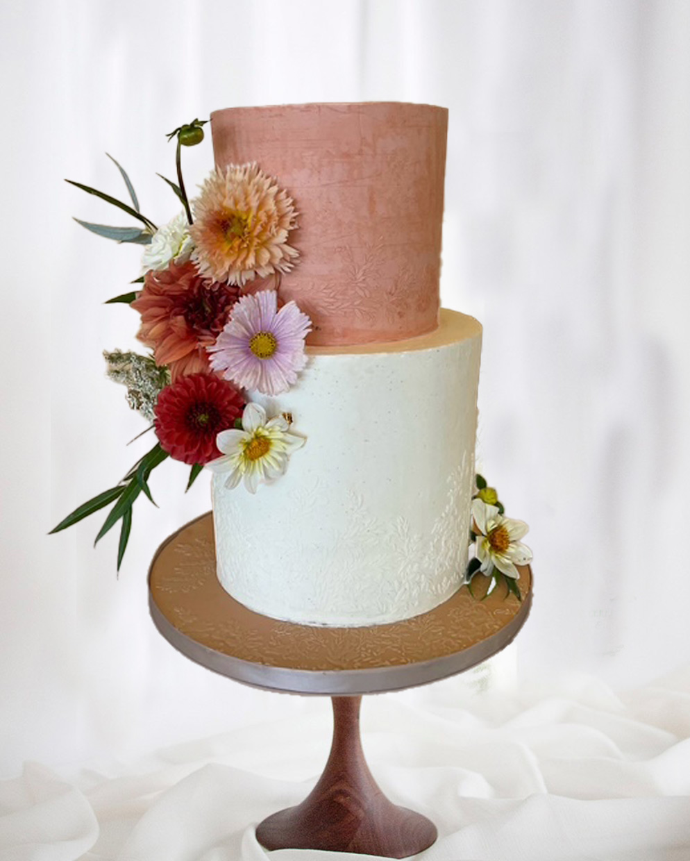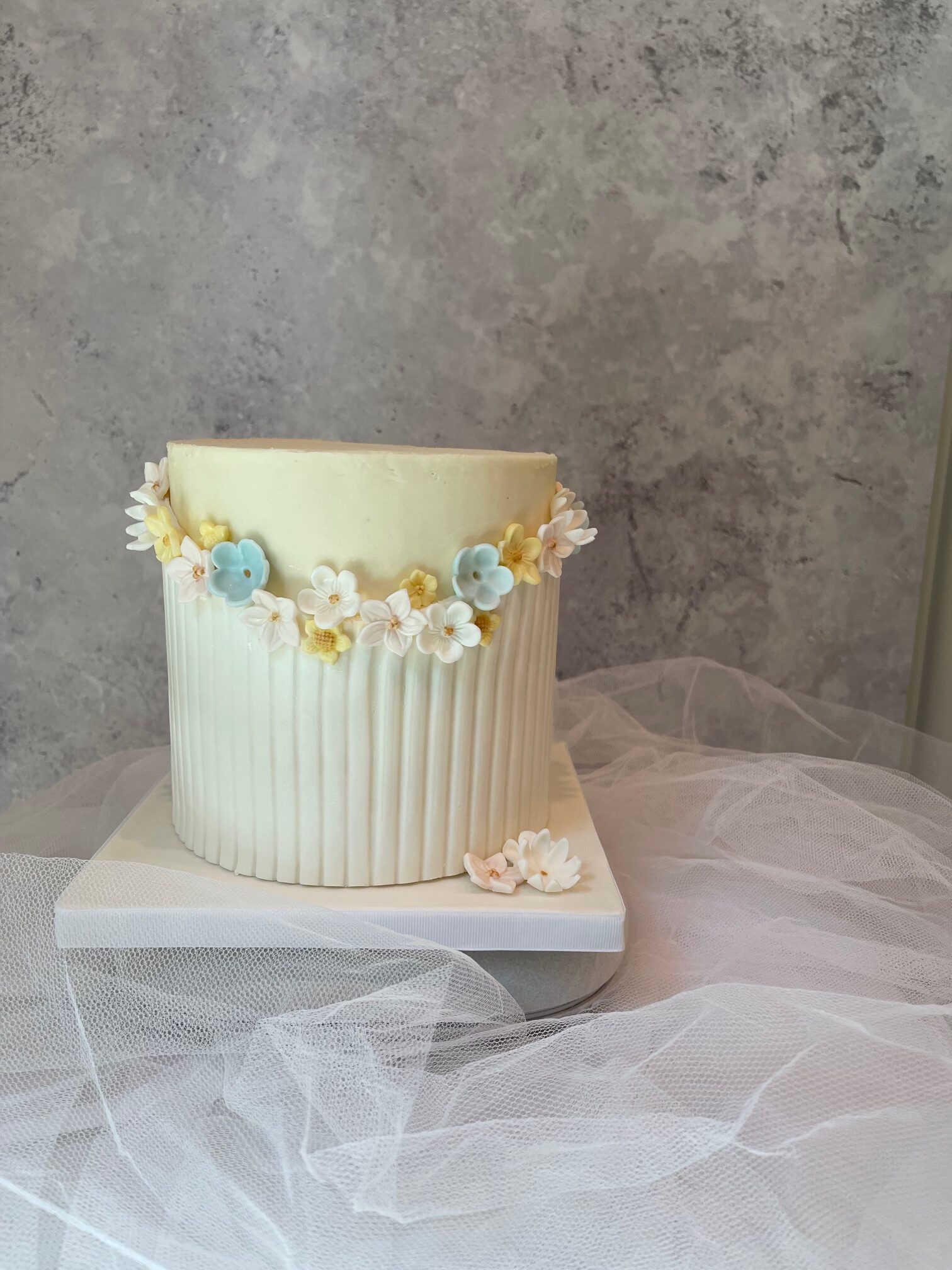 Timeless Anniversary Cake with ribbed fondant and flowers