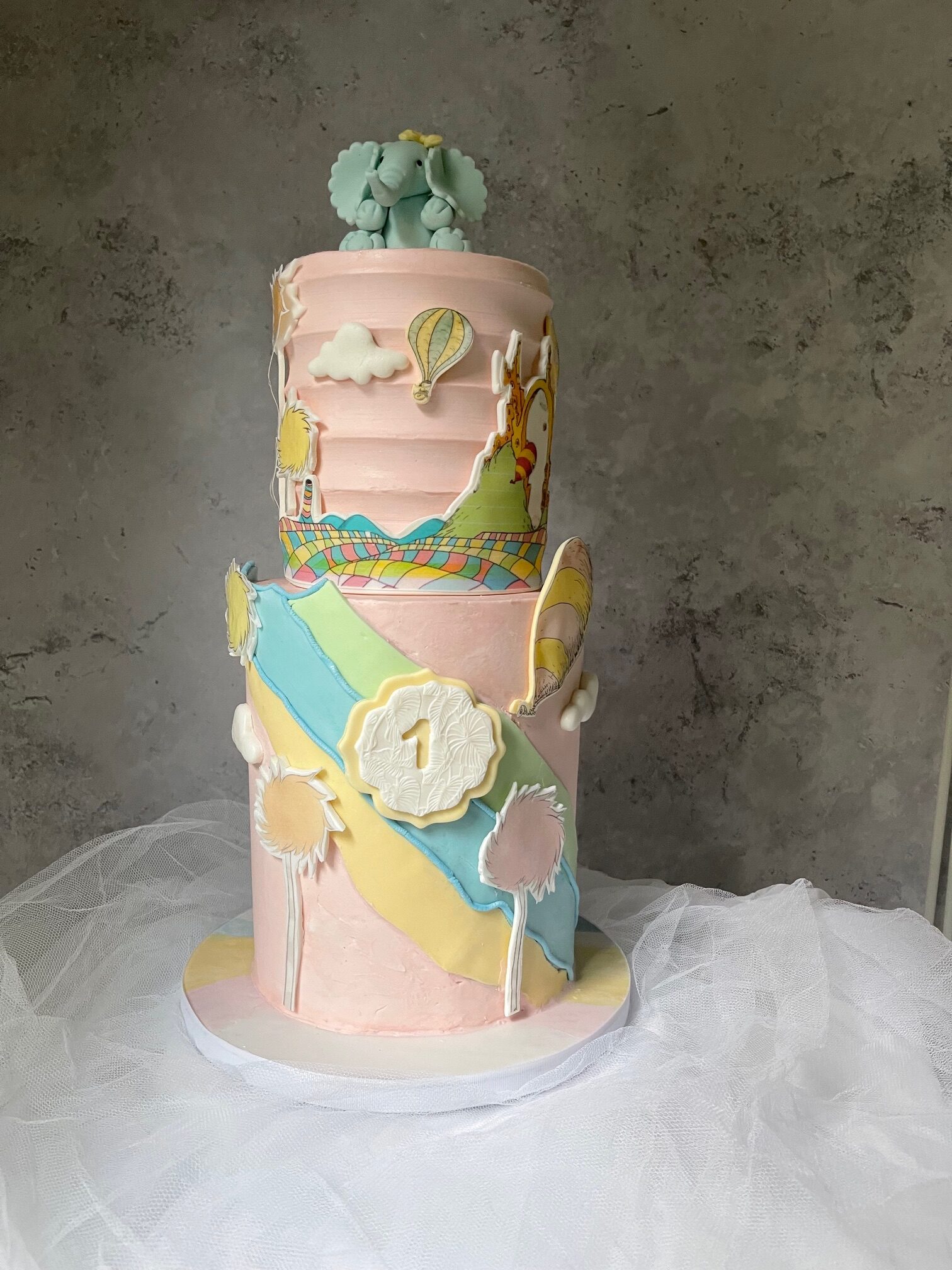 Whimsical edible wallpaper with edible paper and fondant decorations