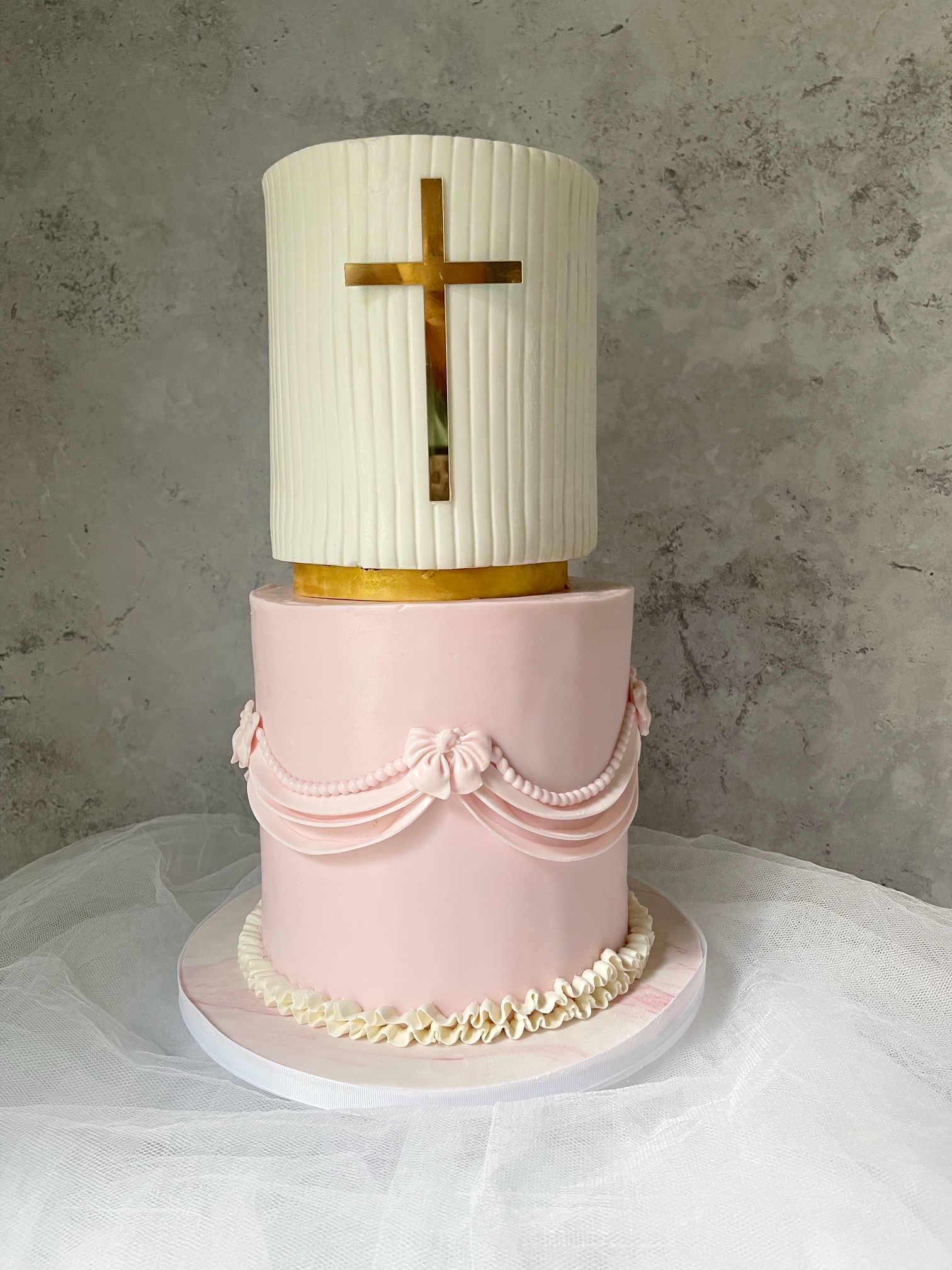 Vintage Lambeth cake with Red and Pink buttercream swirls